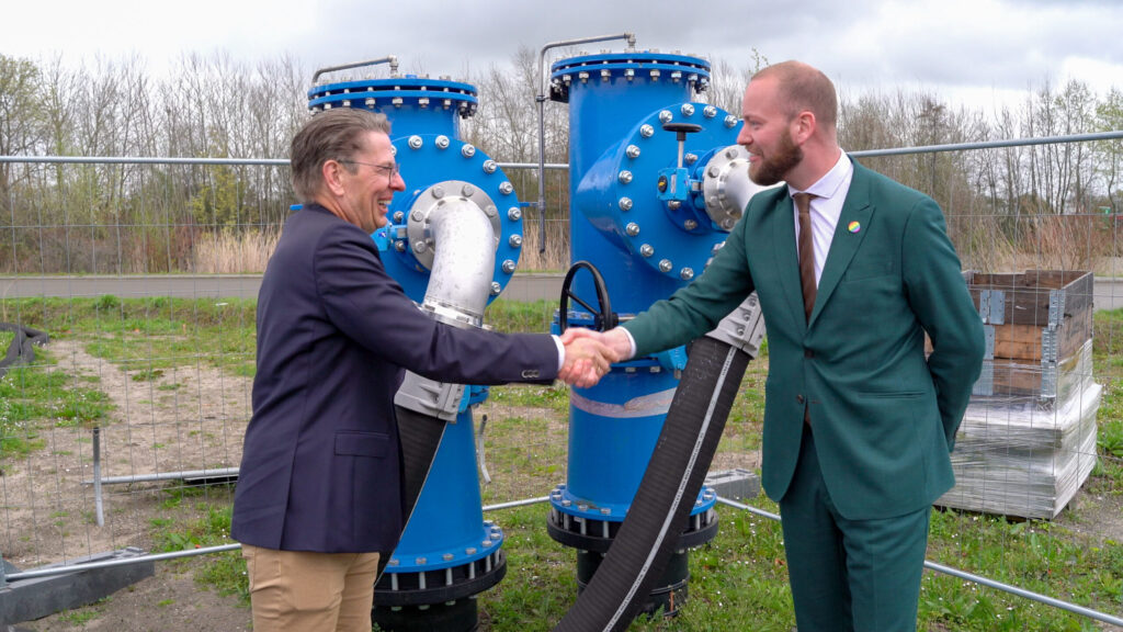 In de nieuwbouwwijk Waterfront in Harderwijk maken de eerste bewoners vanaf nu gebruik van het nieuwe warmte- en koudenet dat hier het afgelopen jaar werd aangelegd.