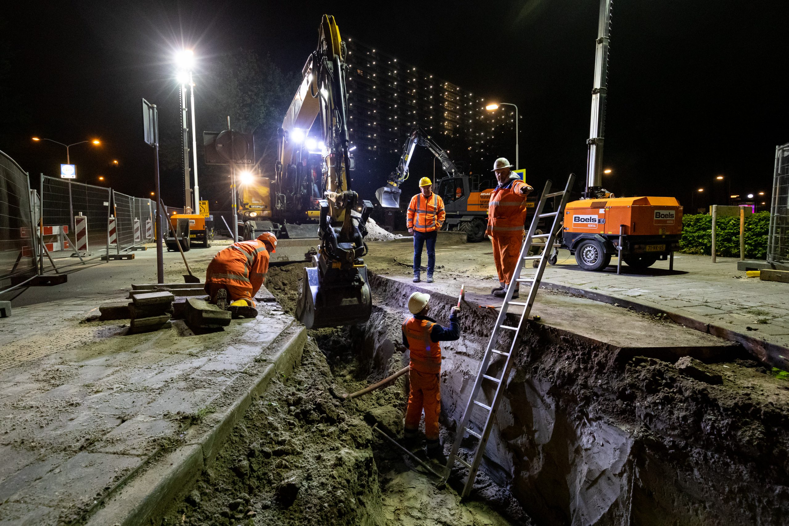 Aanleg van warmteleiding in Zaandam. Er worden warmteleidingen gelegd in het kruispunt De Weer / Koningin Julianaweg in Zaandam. Foto: Ge Dubbelman.